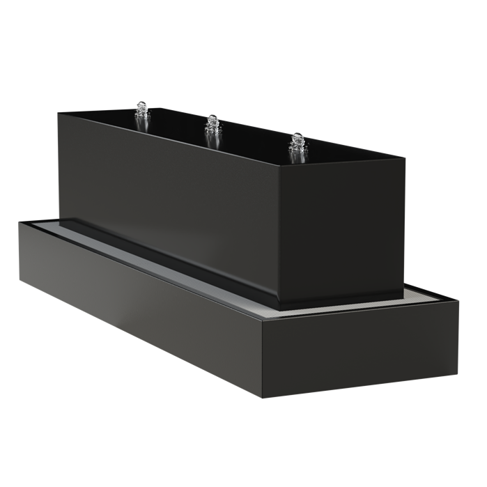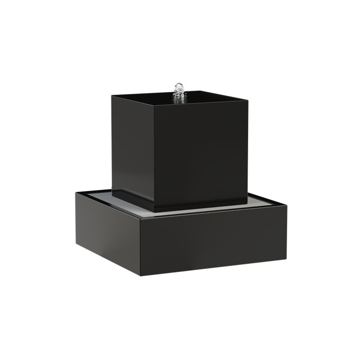 Dit unieke object laat je van vier kanten van stromend water genieten. Het waterblok kan daarom vrij in de tuin geplaatst te worden. Het water stroomt mooi over de rand in de opvangbak, waardoor het veel weg heeft van een waterval.