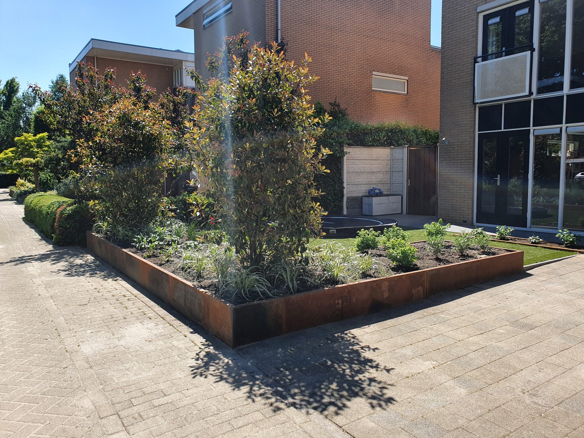 Het karakteristieke warme, roestkleurige uiterlijk van aluminium en cortenstaal contrasteert mooi met groene beplanting en zorgt voor een stijlvol accent. Bovendien is cortenstaal zeer duurzaam en gaat het langer mee. Het materiaal wordt mooier met de jaren en vraagt nauwelijks onderhoud.